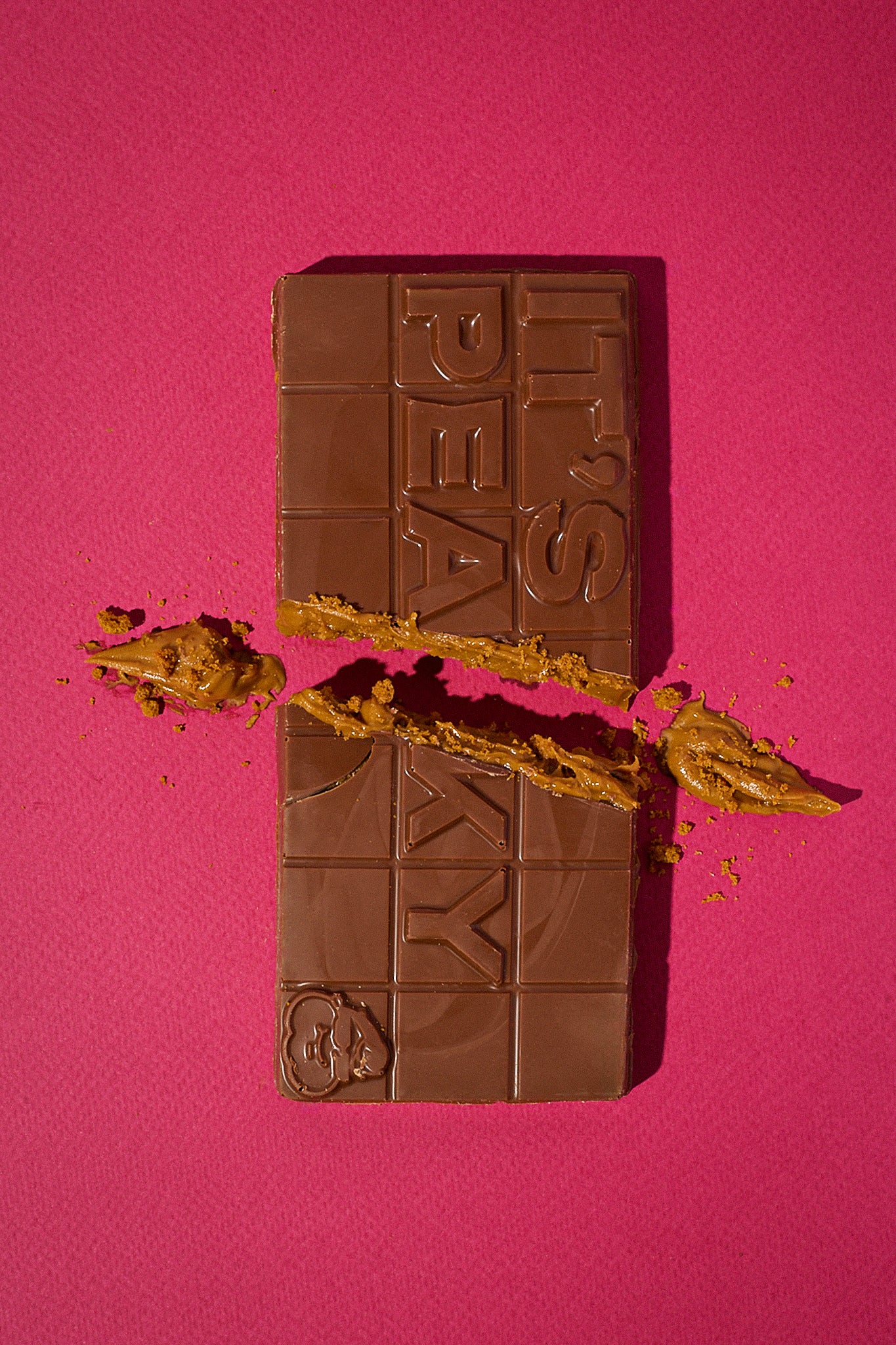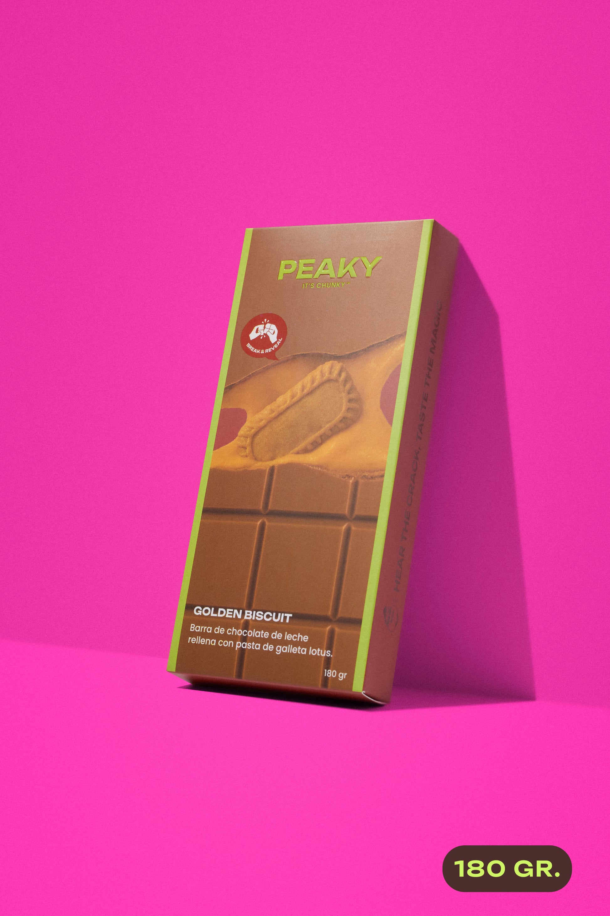 Barra de chocolate de leche, rellena con galletas Lotus y crema Lotus.