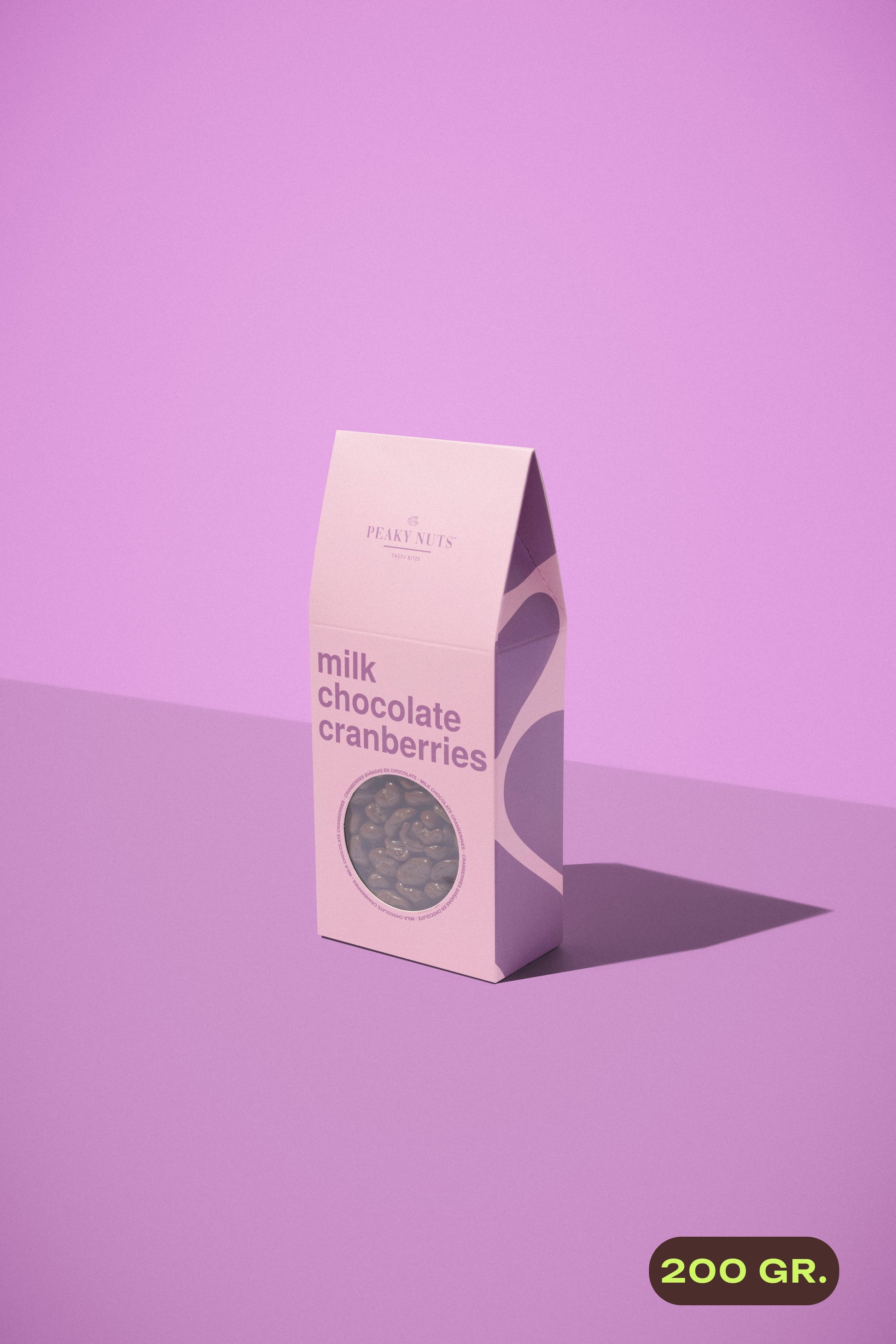 Nuestros cranberries cubiertos de chocolate de leche son el equilibrio ideal entre lo dulce y lo ácido. Perfectos para disfrutar en cualquier momento.